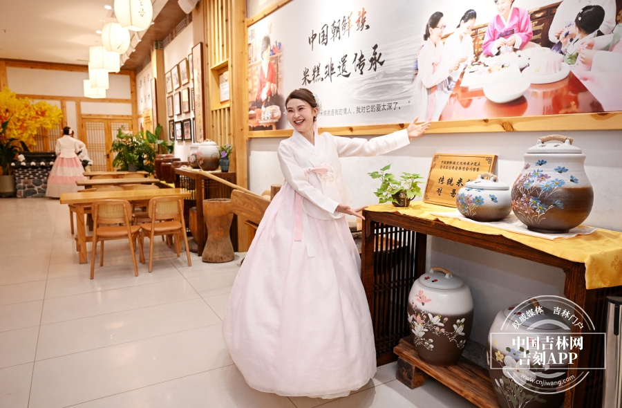 主播们换上朝鲜族服饰,瞬间融入民俗园的景致中