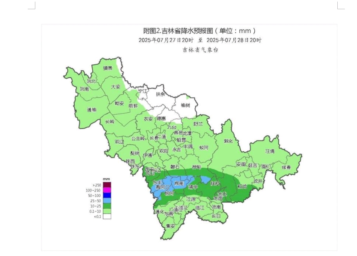 24日以来,我省松原北部、长春、 四平、吉林中北部等地持续受强降水影响;28日夜间开始主要落区较上一次过程偏东, 主要位于辽源、吉林南部、白山北部,但此次过程“面弱点强 ”、 “局地性强 ”的对流性质更为突出,不排除 24-27 日 中部降雨落区出现分散的局地短时强降水的可能。受其影响,中部及偏东地区暴雨、短时强降水灾害及中小河流洪水、局部积涝等次生灾害风险仍较高。