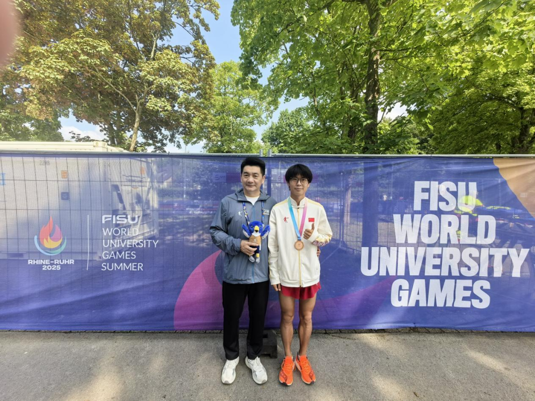 吉林大学体育学院学生马瑞在男子半程马拉松赛场续写精彩。这是他第二次站上世界大学生运动会舞台。此次德国之行,他不仅与队友携手拿下团体铜牌,个人表现更是实现显著突破:完赛成绩1:04:26,较上届的1:06:11大幅提升。