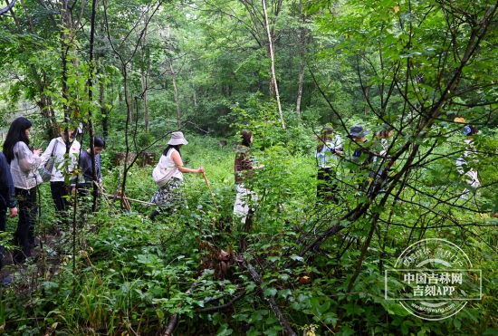 原来,调研采访团队的第一站,就是体验原始森林里采人参。