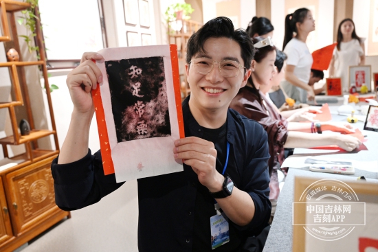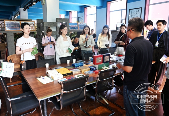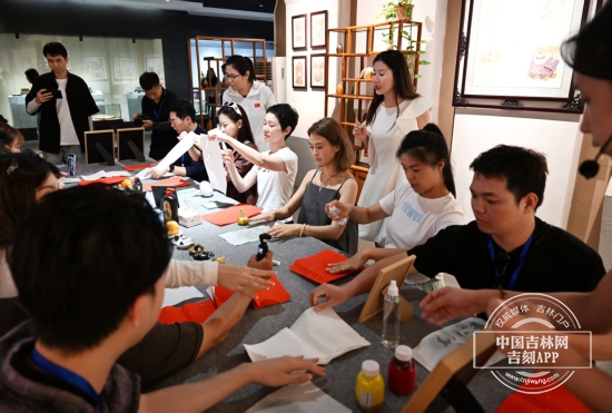 “我之前在一个非遗展上也看到过松花砚的展品,这一次来吉林,能亲眼看到松花石的天然石材,了解雕刻工艺,特别是亲手体验了在松花石雕刻上拓印,觉得自己也融入了这个环境,非常兴奋。”青岫文化吕菲菲说。
