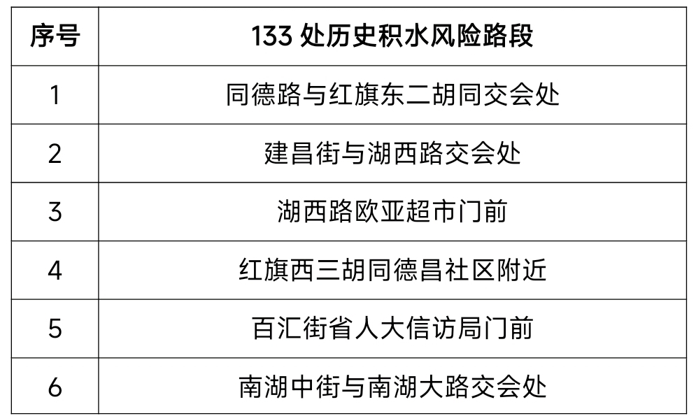 近期,长春市城区防汛指挥部办公室汇总了长春市城区近年来受强降雨影响、曾出现过短时积水的133处历史积水风险路段,供广大市民参考。