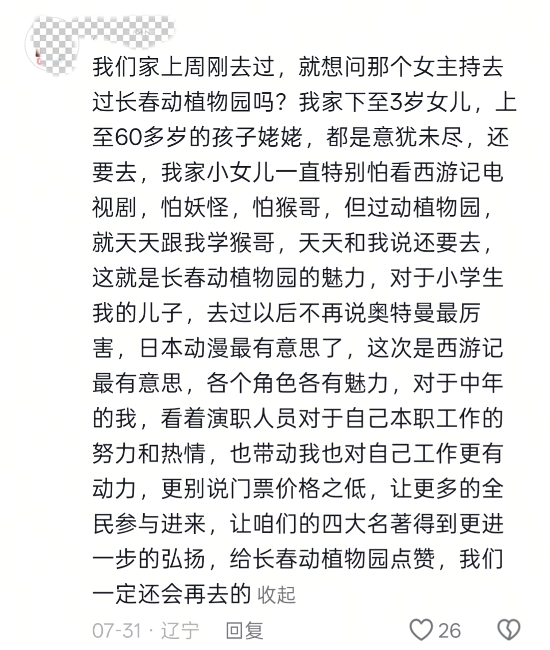 长春的本地博主也赶紧下场讲述真实的长春动植物公园。