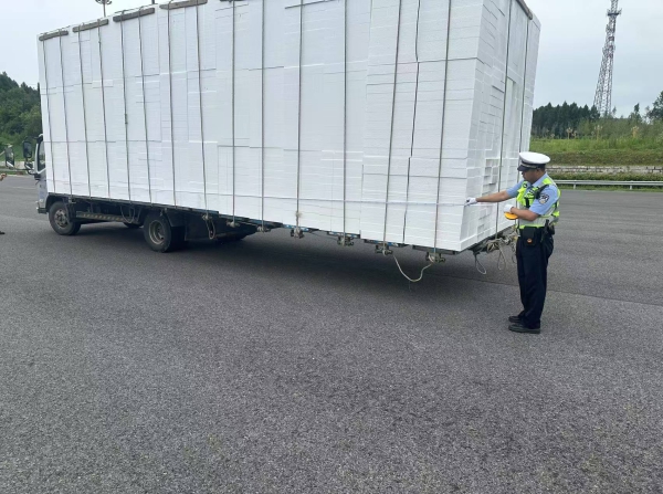 民警当场向娄某详解此类违法的危害:未悬挂号牌会影响交通违法追溯,而超长货物在高速行驶时,变道易占用其他车道引发剐蹭,行驶中若因货物长度导致车速异常,还可能引发后车追尾等事故。随后,民警依法对娄某的两项违法行为分别作出处罚,并责令其消除违法状态。娄某需先前往相关部门办理车辆号牌登记并正确悬挂,对于超长的泡沫板,要联系合适的运输工具进行分批次运输或重新合理装载,确保货物长度符合规定,在消除违法状态并经交警检查合格后,车辆才可重新上路行驶。
