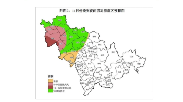 强对流天气主要集中在两个时段:11日夜间和12日傍晚到夜间。