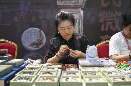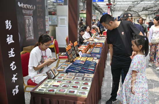 在吉林省文化非遗馆,彭祖述艺术馆带来的松花石艺术文创产品,备受市民、游客的欢迎。