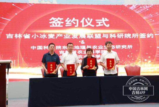 签约仪式成为本次会议的高潮。吉林省小冰麦产业发展联盟分别与广东乡村振兴文化服务产业园、吉林省京腾科技集团有限公司签约;与中国科学院东北地理与农业生态研究所、吉林省农业科学院等4家科研院所签约;还与长春大学食品学院、吉林农业科技学院等4所高校签约,旨在深化产学研融合,挖掘“吉林小冰麦”产业潜力,推动优质农产品市场拓展。