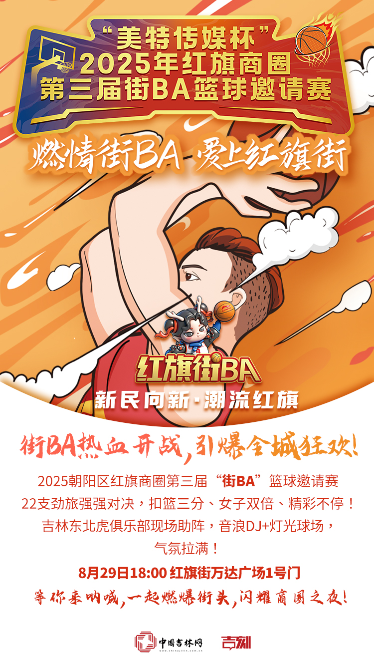 热血篮球,燃动商圈!备受期待的2025年朝阳区红旗商圈第三届“街BA”篮球邀请赛,即将于8月29日18:00在红旗街万达广场1号门室外灯光篮球场盛大启幕。赛事将持续至9月中旬,一场属于市民的篮球盛宴,即将点燃这个夏夜!
