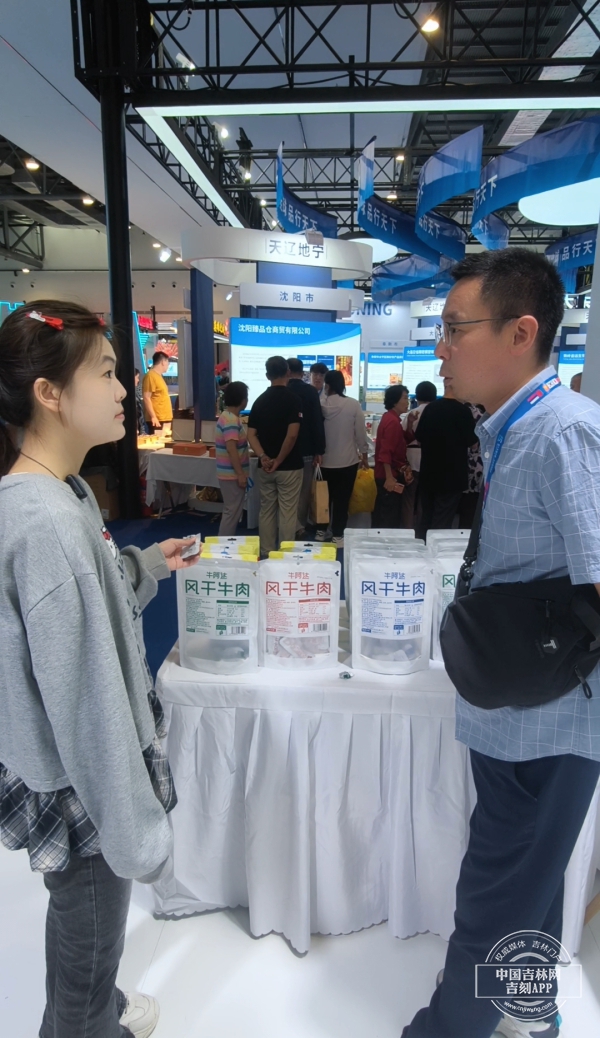 一旁的周思岐,则在内蒙古展区找到了“童年味道”。2001年出生的她,看到展区里的牛肉干和奶制品,瞬间想起小时候的记忆,“这些都是从小吃到大的,看到就觉得亲切。”而展区里展示的“内蒙古五畜”的工艺品是她第一次见到,让她发现了家乡文化的“陌生面”——“之前完全没了解过,还是问了工作人员、又查了百度才知道,原来家乡还有这么有特色的文化符号。”