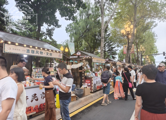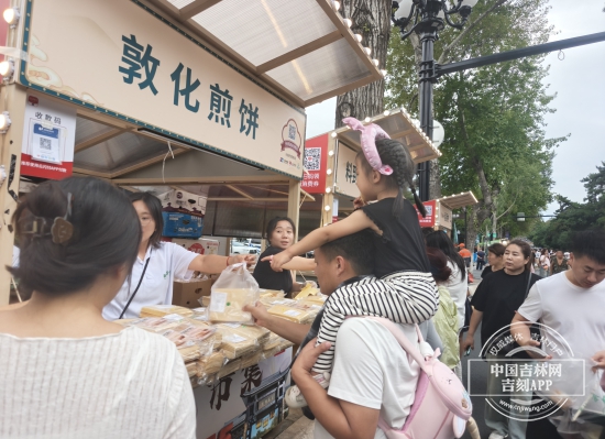 刚来到新民大街,就被山货市集的香气勾住脚!吉林各地的特色好货摆满摊位,新鲜爆汁的蓝莓酸甜口感一口沦陷,摊主大姐热情吆喝着“尝一尝再买!”还有人参制品、各地美食引来大家关注,“前头是榆树干豆腐。”“敦化煎饼好吃,咱们买点回家”“通化的葡萄酒啊,咱们过去看看,”耳边都是大家的声音,边吃边唠的烟火气太治愈。