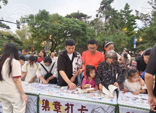 打卡盖章区全是集章爱好者,大家攥着打卡本挨个盖章,“有新民大街的、经典电影的等等,必须集齐留作纪念!”小学五年级的陈同学说。