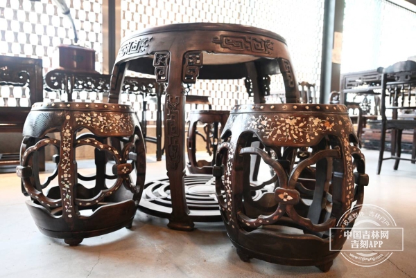 回溯到上世纪五六十年代,长影筹拍《甲午风云》时,道具师为了还原历史场景,四处寻觅合适的道具,最终在北京故宫的院落里,发现了这批被闲置的老红木家具。因道具与影片场景高度契合,长影向上级申请调拨,经协调后,这批红木家具由上影、北影、长影三家电影厂均分,其中一部分便就此落户长影。如今数十年过去,这批红木家具依旧完好如初:厚重的木料透着扎实的质感,精致的雕花与榫卯结构,尽显旧时手艺人的精湛技艺。