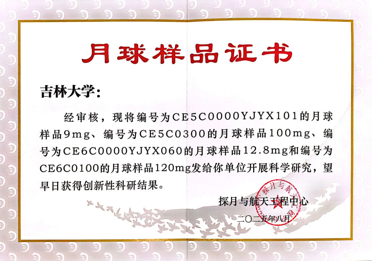 今年7月,探月与航天工程中心组织召开了第九批月球科研样品借用申请评审会。经月球样品专家委员会评审,探月与航天工程中心审核并报国家航天局批准,最终25家科研机构的申请获得通过。吉林大学生物与农业工程学院地面力学及仿生行走团队获批样品四份,其中嫦娥五号样品2份,嫦娥六号样品2份,团队负责人邹猛教授为此次样品的使用责任人。