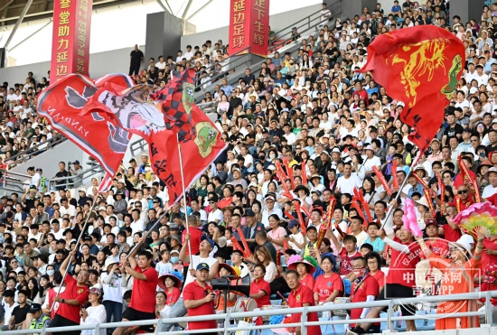 赛场上的精彩也没让人失望!精彩激烈角逐赢得球迷阵阵掌声。最终延吉队2:1赢了比赛,球员们绕场致谢时,球迷们把掌声和欢呼声送了一遍又一遍,这股子热闹劲儿,谁看了不说一句“足球之乡名不虚传”!