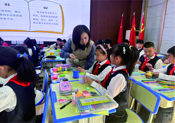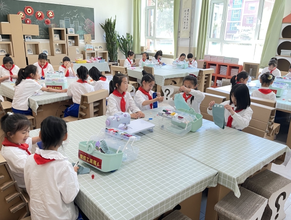 在育人模式上,学校摒弃传统说教,以“体验式”活动唤醒学生文明自觉。劳动节里,学生清扫校园、走进社区帮老人整理房间;母亲节时,手写贺卡、亲子春日行让感恩种子发芽;“跳蚤市场”上,六年级学生王梓轩主动请教沟通技巧,用真诚让闲置物品变 “宝贝”。2023年成立的体育发展中心更成为文明培育新阵地,52名体育教师打破教学壁垒设计贯通式课程,篮球课上的团队配合、攀岩课上的自我突破,让“坚持到底就是胜利”的信念深植学生心中。“自从落实课间15分钟以来,班级、走廊、操场都摆放了器材包和整理箱,学生随拿随玩、自主归还,既保障器材使用,又培养了自我管理能力。” 体育中心主任张语晴介绍道。