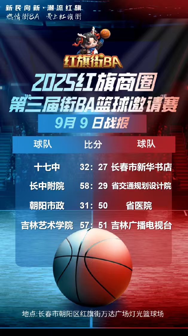 9日比赛, 十七中以32:27的比分战胜长春市新华书店;长中附院实力强劲,以58:29的大比分优势击败省交通规划设计院;朝阳市政与省医院的比赛中,省医院发挥出色,50:31拿下胜利;吉林艺术学院与吉林广播电视台展开了一场胶着的对抗,最终吉林艺术学院以57:51险胜。