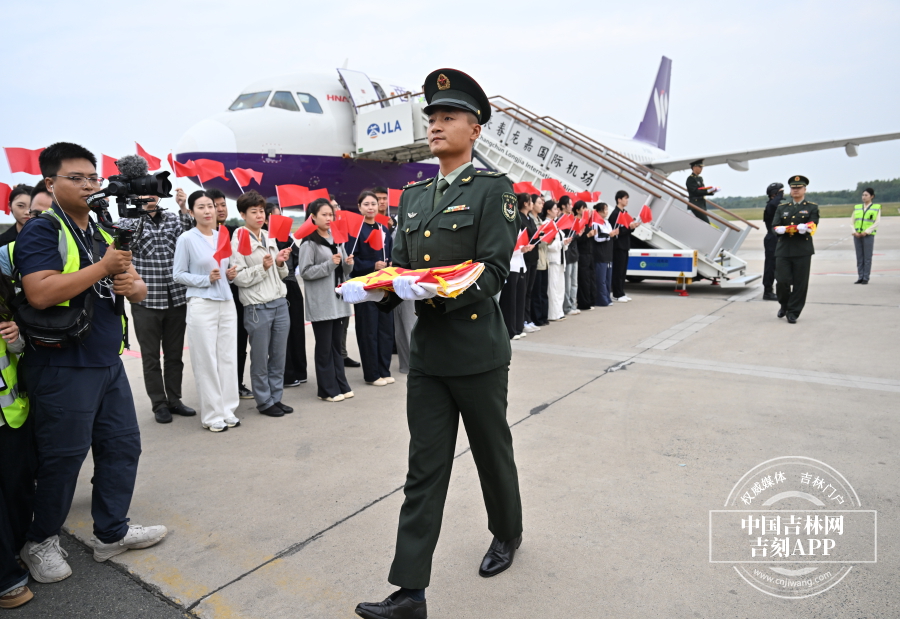 9月14日,搭载着“杨靖宇支队”战旗的飞机顺利抵达长春龙嘉国际机场,此刻的停机坪上已经涌动着炽热的人群。
