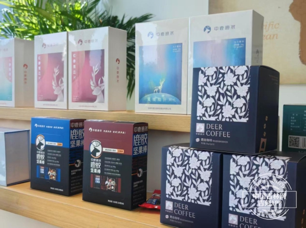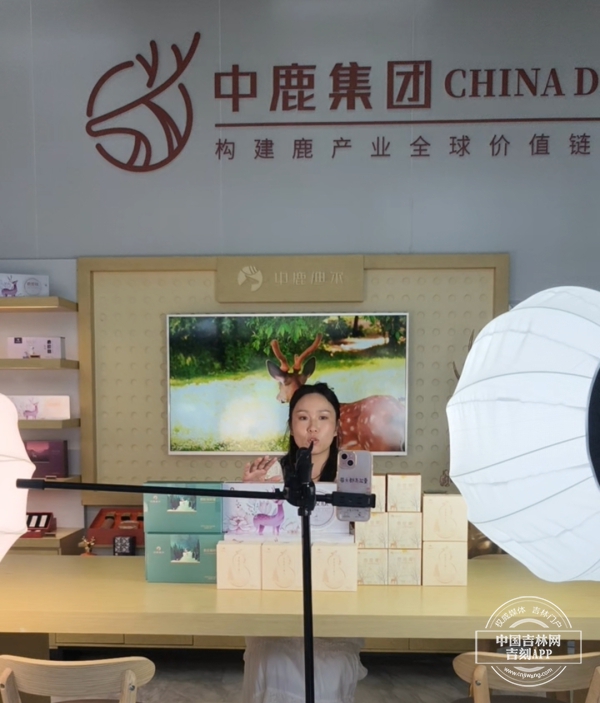 一进门,一下就被正在直播的主播吸引,“我们的这款鹿胶肽是补充胶原蛋白非常好的产品……”在她的面前和展厅里,除了鹿产品,还摆放着参鹿合作的新产品。