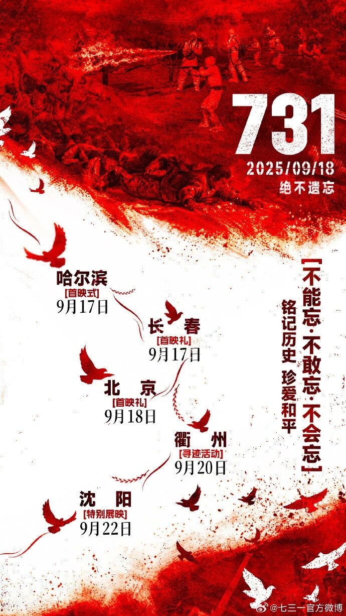 17日,电影《731》将在长春举行首映礼,这一承载着沉重历史记忆的影片引发广泛关注。而随着片方公布的海报显示《不能忘·不敢忘·不会忘》多地主题活动即将开启,其中9月20日将在衢州举行寻迹活动,这不禁让人好奇,衢州与这段历史有着怎样的渊源?