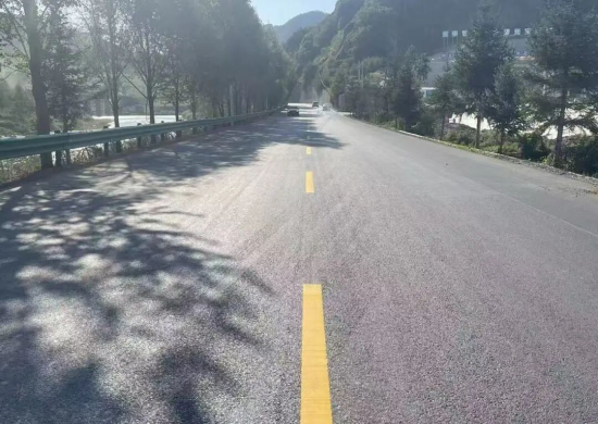 夏季多雨,白山市十二道沟至干沟子段引入2厘米超薄罩面技术,抗滑性能优异,雨天行车更安全,且 “当天铺设当天通小车”,最大程度减少对村民出行的影响。