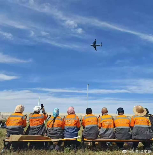 采访开始前,陈思麒向记者分享了在社交媒体被刷屏的一张照片。画面中,几位环卫工人坐在一排,运油20正从他们眼前呼啸而过。摄影师捕捉下了这个瞬间——劳动者的目光与国之重器在空中交汇。