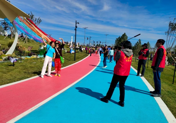 精细化服务,优化游览体验。清晨6点半,志愿者们已集结完毕,身着统一标识马甲,以饱满的精神状态投入工作。他们采用“流动巡查+定点值守”相结合的模式,确保游客在任何时间、任何区域都能及时获得帮助。在园区20处园林绿化微景观展示区,志愿者们提供“讲解+助拍”的双重服务,既专业解读景观的生态内涵和艺术价值,又贴心帮助游客记录美好瞬间。展会期间,累计提供讲解服务近600次,协助拍摄近千次,让微景观区成为最受欢迎的“网红打卡点”。