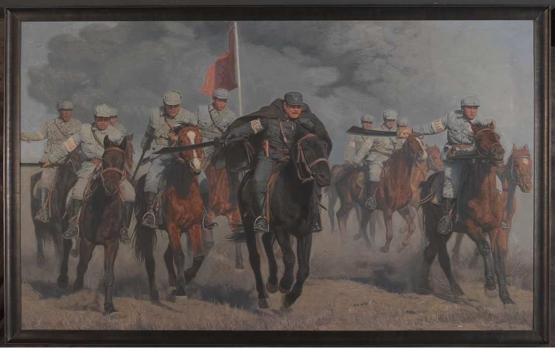 油画《吉鸿昌》通过高超的写实技巧和充满象征意味的艺术处理,成功地刻画出抗日名将、民族英雄吉鸿昌将军奋勇杀敌的马上雄姿,通过奔驰的骏马、战场的硝烟、飘扬的红旗,真实地描绘出吉鸿昌将军的英勇与崇高,将金戈铁马与爱国豪情一同熔铸于画布之上。作品不仅是向吉鸿昌将军个人的致敬,更是对中华民族伟大爱国精神和英雄主义的一曲壮丽颂歌,具有强烈的艺术感染力和深刻的教育意义。