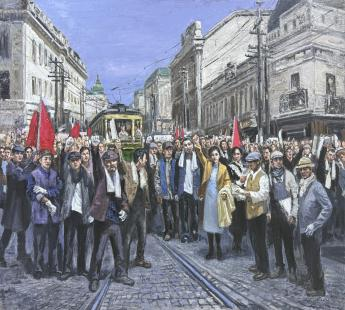 《赵一曼领导哈尔滨电车工人大罢工(1933年)》 油画