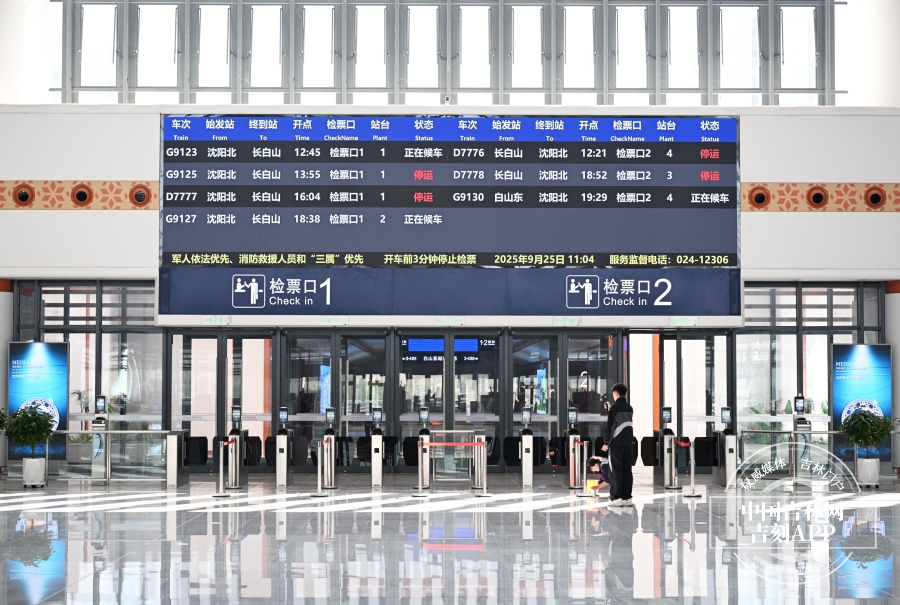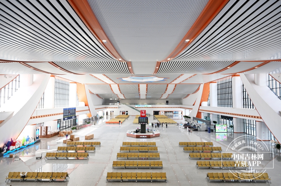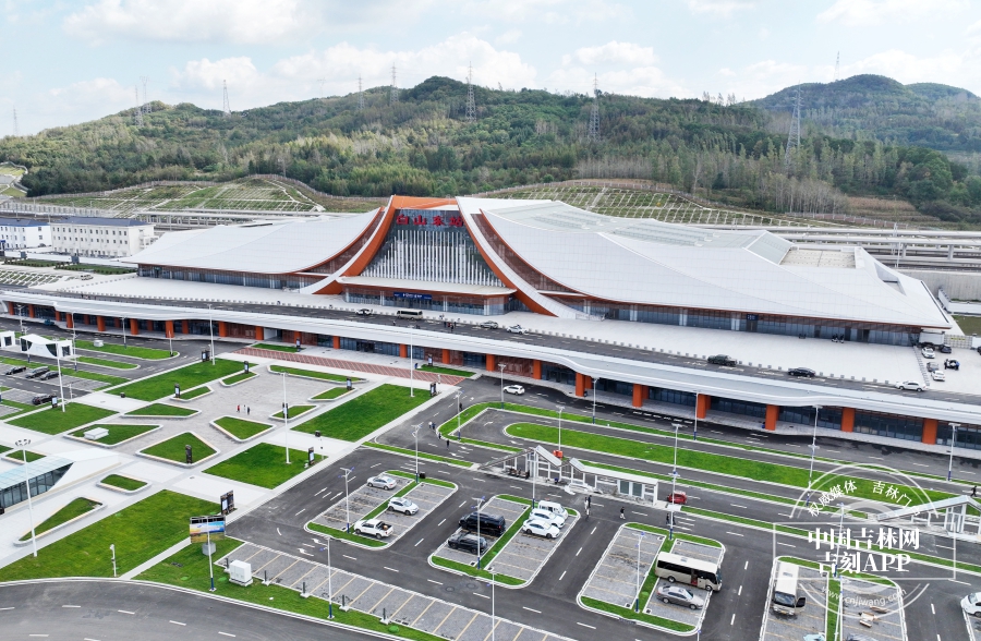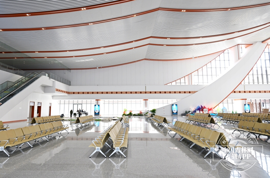 透过候车大厅的幕墙窗格,白山四季美景可尽收眼底