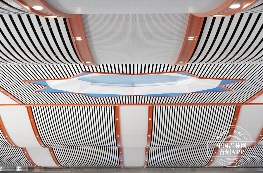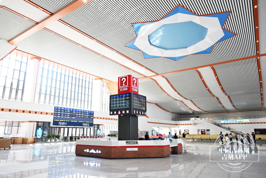 站房外立面以长白山为原型,巧妙地将“山脉、雪松、冰挂、冰花”等本地特色元素融入其中