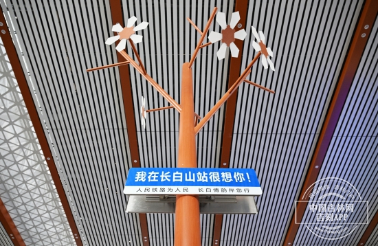 “绿水青山就是金山银山”“冰天雪地也是金山银山”大型文化造型、“大美长白”78米文化长卷、“神山圣水”锻铜浮雕、“长白传说”24幅木雕、“吉林八景”活力画卷等,让旅客充分领略了“进站特色文化游,出站自然山水游”的浓郁文化气息和多彩文化风情。