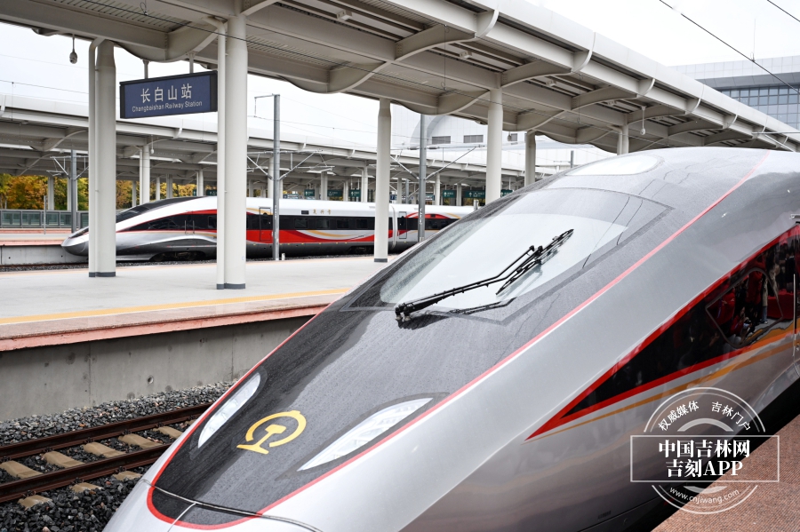 吉镜头丨沈白高铁长白山站首发列车发车
