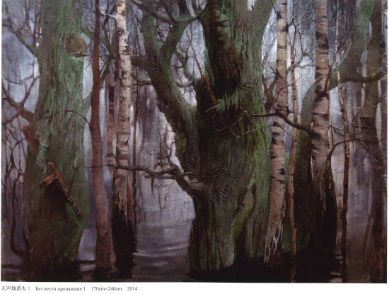 以细腻的笔触描绘出森林的幽深景象。树皮纹理与枝干交错,营造出静谧且略带神秘的氛围。朦胧的色调与光影处理,似在隐喻着自然中某些事物在无声无息间的消逝。整幅作品没有直白的悲伤宣泄,却借画面的每一处细节,引发对生命脆弱易逝的深深思考,以及对那些无声消失生命的惋惜与铭记。