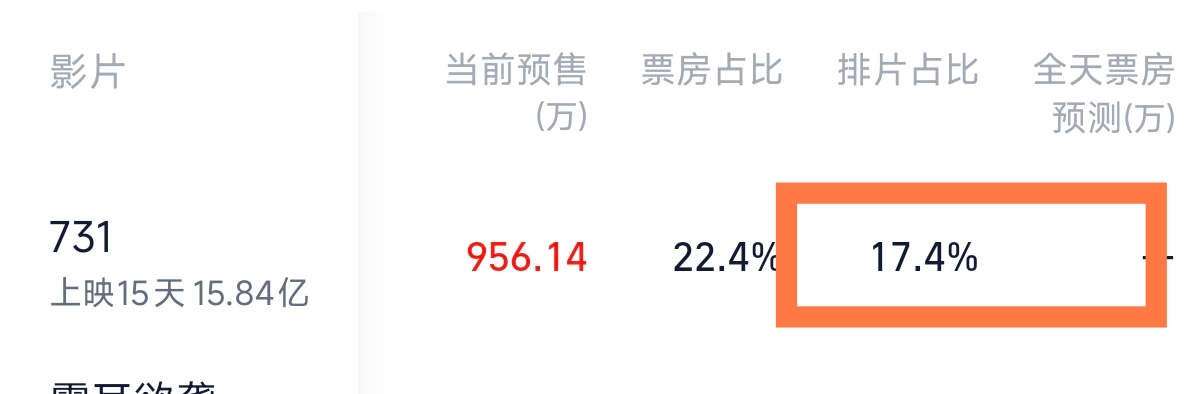 国庆档首日,在众多新片夹击下,《731》凭借观众口碑完成惊人逆袭,堪称国庆档“黑马”。10月1日首日全国排片仅8%的情况下,面对十多部新片竞争,该片凭借强烈的历史感染力保持高上座率,观影人次持续攀升,不少未能买到合适场次的观众自发成为“自来水”呼吁增加排片。至当日傍晚黄金档,其排片占比已升至9.9%,票房跻身全国前三。