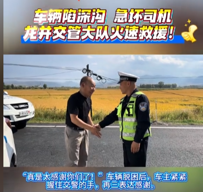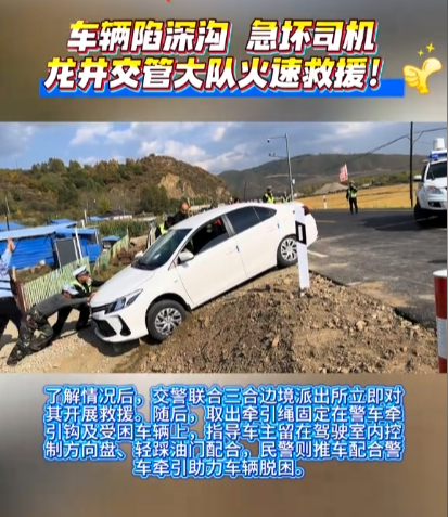 “转弯没注意,一下开进路面深沟时真的慌了,没想到交警和附近派出所的民警火速赶来!”