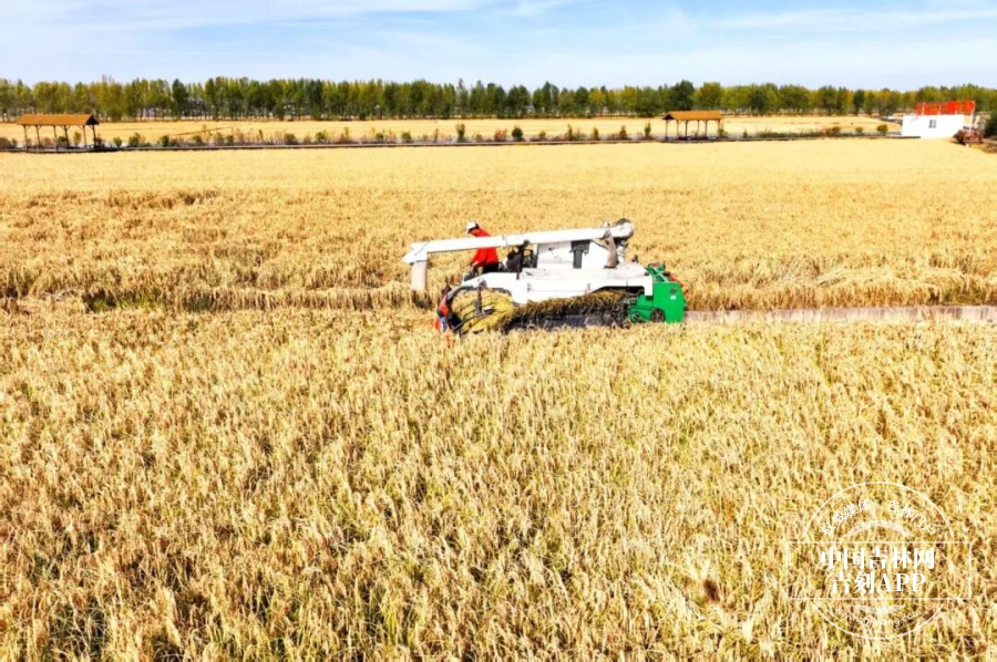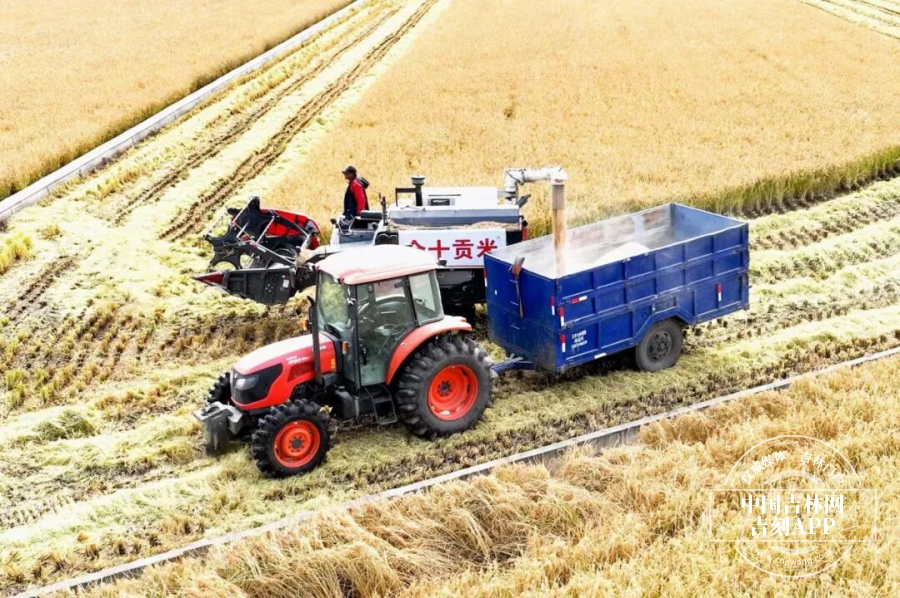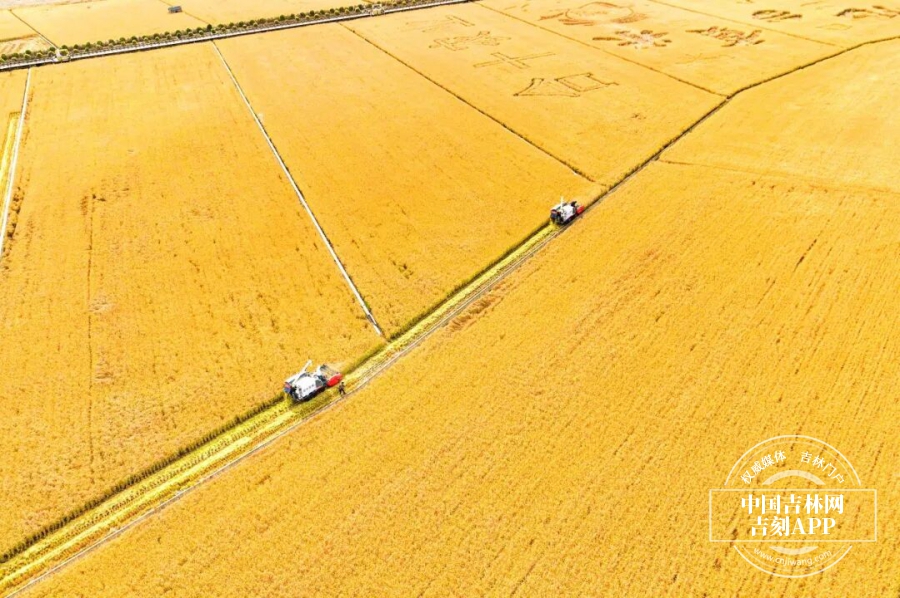 10月12日,长春市九台区红光村的千亩稻田里,数十台收割机隆隆作响,在金色的稻浪中来回穿梭,勾勒出一幅繁忙而壮丽的秋收画卷。