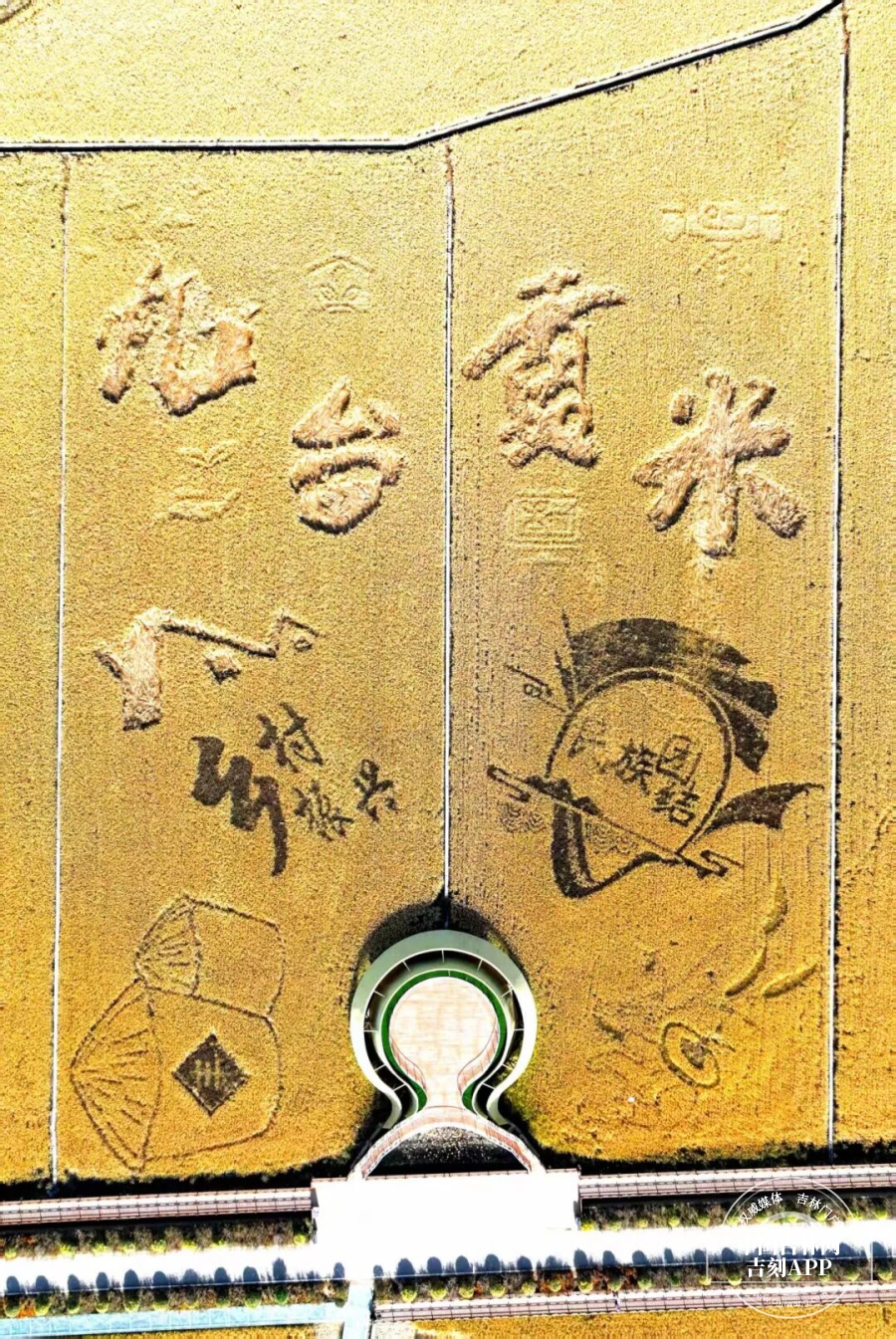 “乡村振兴”、“民族团结”字样的稻田画,成为这个丰收季最独特的风景。