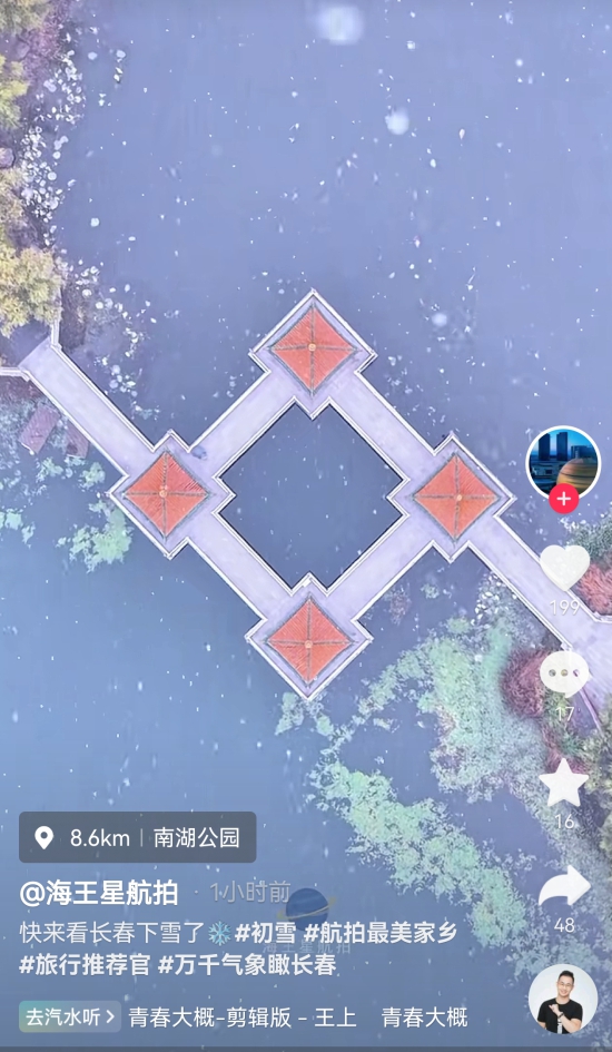路边树悄然换上了冬装,街头巷尾,行人们放慢了脚步,举起手机,记录下这冬日馈赠的第一份浪漫。