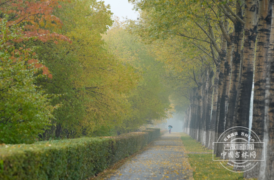 在松原市外滩路,一场秋与雪的温柔在这里邂逅。枫红、杨黄、松绿的枝叶间,缀满蓬松的雪絮,每片叶子都裹着白边,鲜活又剔透。