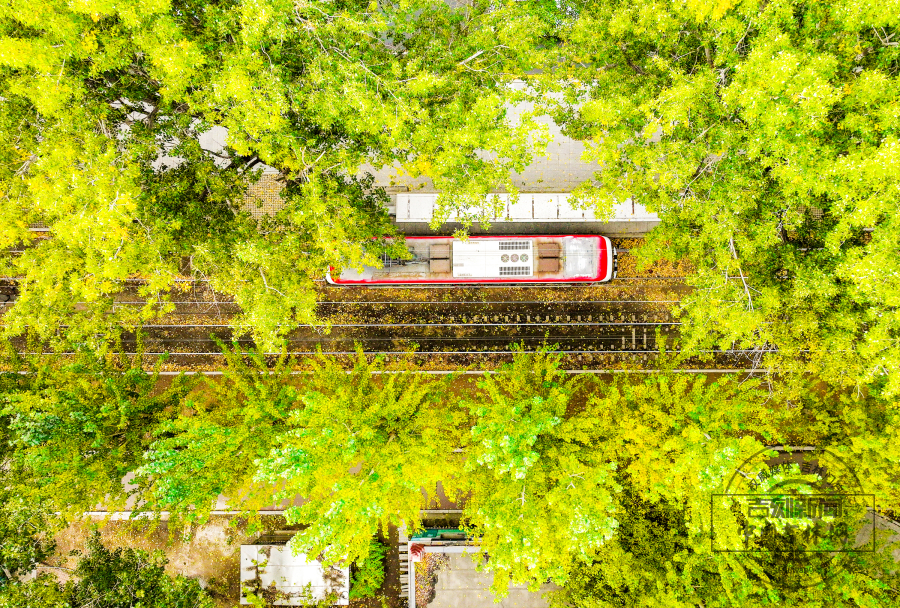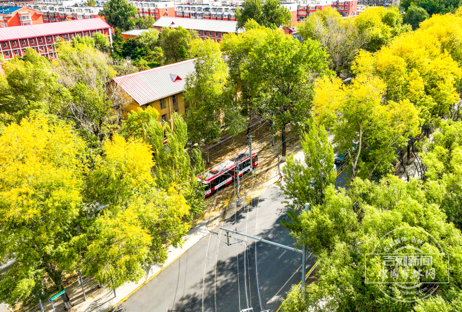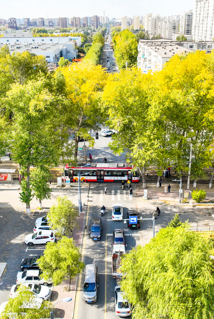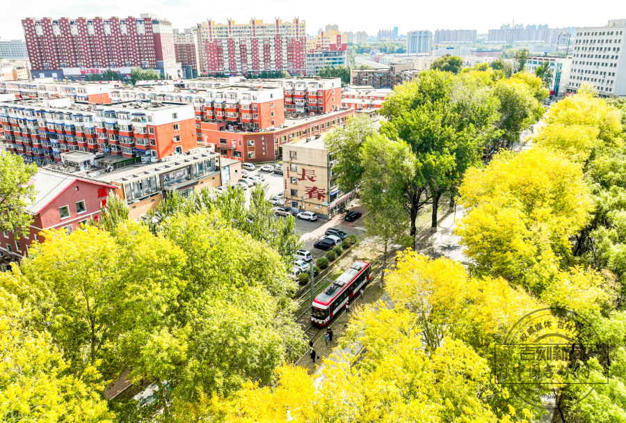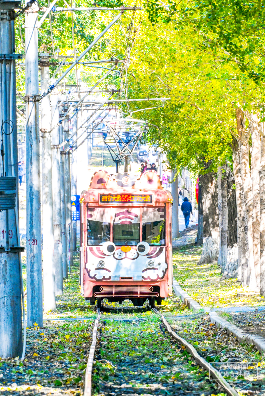 长春54路有轨电车沿线披上金装,迎来秋日最美景观