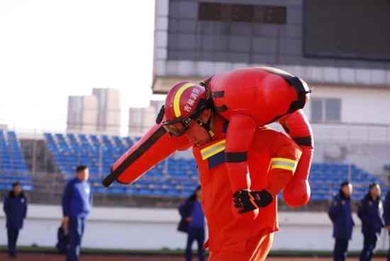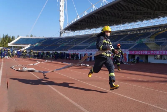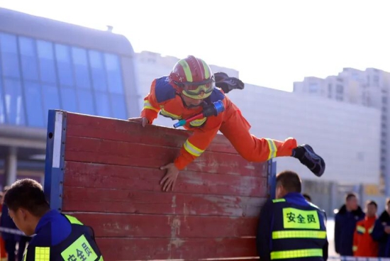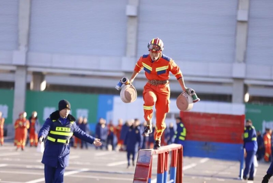 超级组、甲级组、乙级组的赛场上,负重上10楼、60米肩梯登楼、100米消防障碍、攀登挂钩梯上4楼、400米疏散物资等高强度、高难度科目轮番上演。晨曦微露,秋风瑟瑟,竞赛现场已气氛火热,加油声、呐喊声此起彼伏。赛道起点上,队员们屏气凝神、积蓄力量,随着“开始!”口令落下,他们迅疾而动,或冲刺、或架梯、或攀爬、或越障、或负重,每一次比试都是对体能和技艺的检验,每一步跨越都是速度与技巧的完美融合。在这场力量、速度、技能与意志的巅峰对决中,长春消防的指战员们以无畏的勇气和卓越的表现,生动诠释了新时代应急救援“尖兵”的硬核实力。