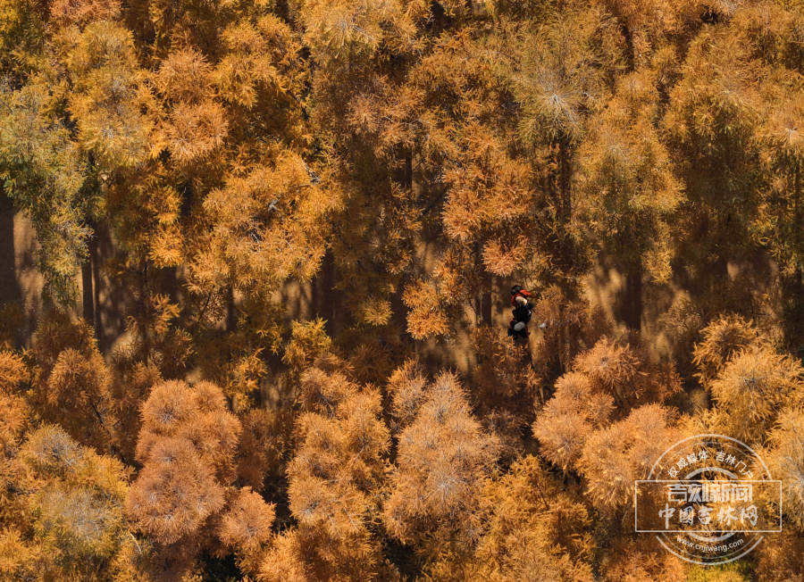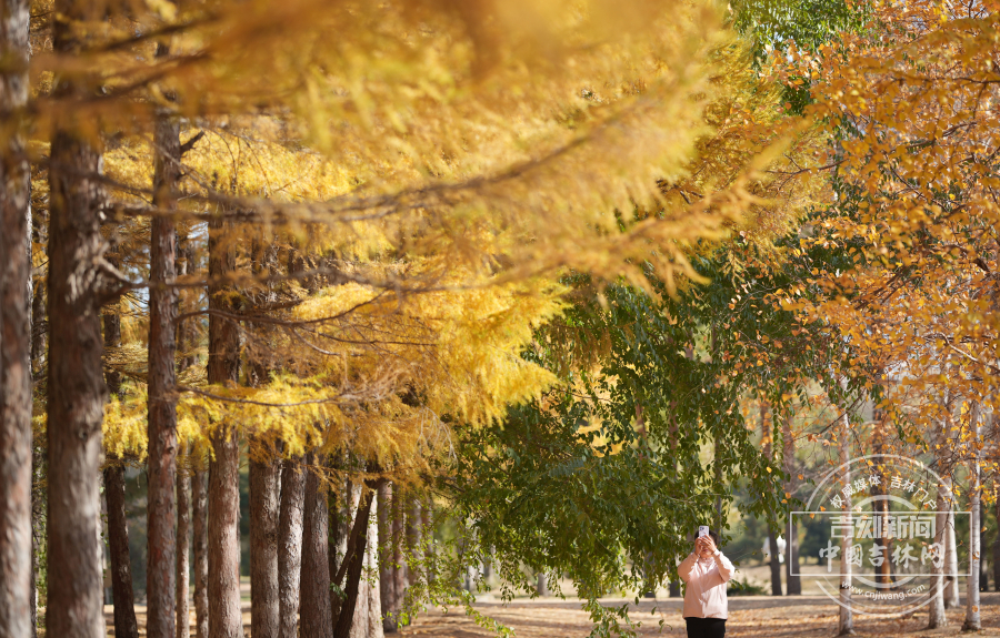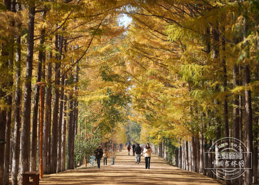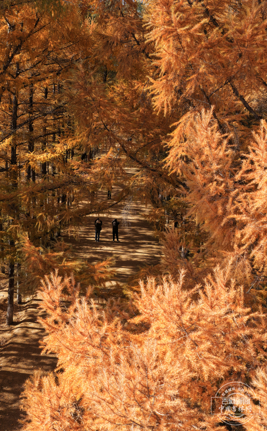 10月28日,百木园“黄金大道”已换上“金色盛装”,近500米长的落叶松针铺成“金色地毯”,形成了油画感景观。