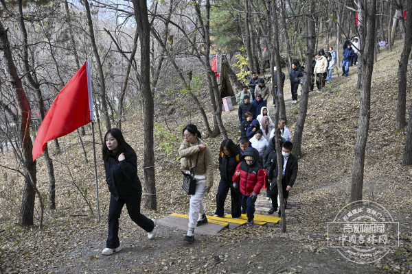 活动中,吉网传媒干部职工沿着抗联战士的“行军路线”徒步登山,穿越密林,抵达密营地。
