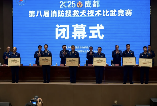 长春市消防救援支队一行13名指战员,携11头搜救犬参加了此次比赛。经过7天的激烈角逐,参赛队伍凭借过硬的业务本领、顽强的战斗作风和出色稳定的临场发挥,从众多强劲对手中脱颖而出,斩获团体总分第十一名的优良成绩,勇夺野外搜救科目全国第二名、箱体搜救第十一名的好战绩,并荣获大赛“精神文明奖”。更在闭幕式上,因展现出的卓越专业技术与良好精神风貌,获得国家局领导现场点名表扬,为长春市消防救援支队乃至全省消防队伍赢得了荣誉。