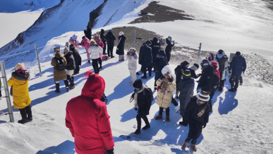 转向长白山区域,冬日的活力更盛。从西坡登顶天池时,四川游客陈惠一家的欢呼犹在耳畔;漫江村新打造的初级滑雪场里,江苏游客高赛红带着家人“随心所欲” 玩雪;夜幕降临时,长白山云顶市集的灯光亮起,文创摊位、特色小吃前挤满游客,我们挤在人群中拍照,仿佛也成了这 “冰雪经济” 的一份子。