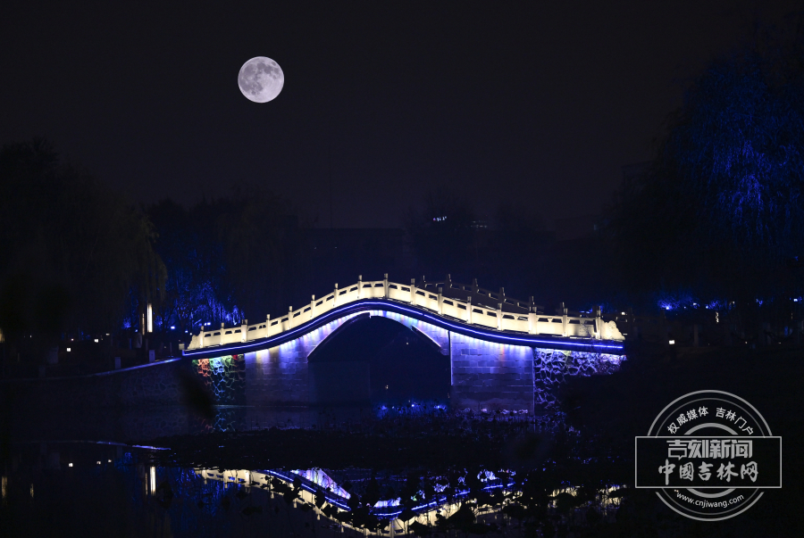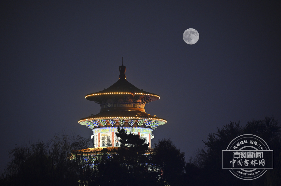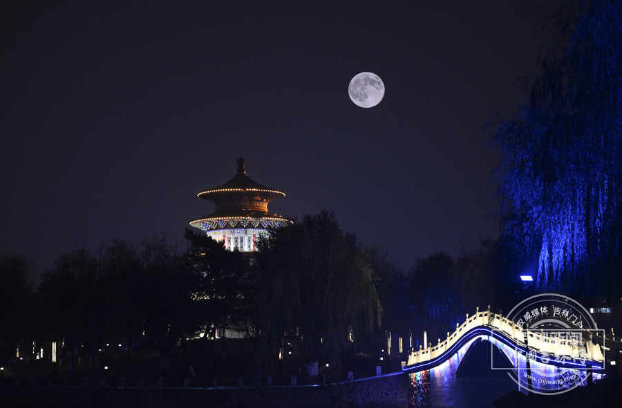 2025年11月5日晚,年度最大超级月亮在长春夜空惊艳亮相。长春市二道区和顺里街区,红灯笼与古色牌坊相映成趣,超级月亮高悬天际,为市井烟火添了几分诗意;在劳动公园内,仿古楼阁与月同辉,彩灯桥倒映在湖面,月光与灯火交融,勾勒出古典与现代交织的长春夜景。从城市街巷到园林胜景,长春在超级月亮的映衬下,尽显北国春城的独特韵味,让市民在秋夜中邂逅了一场视觉盛宴。