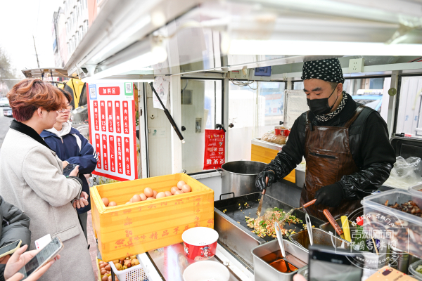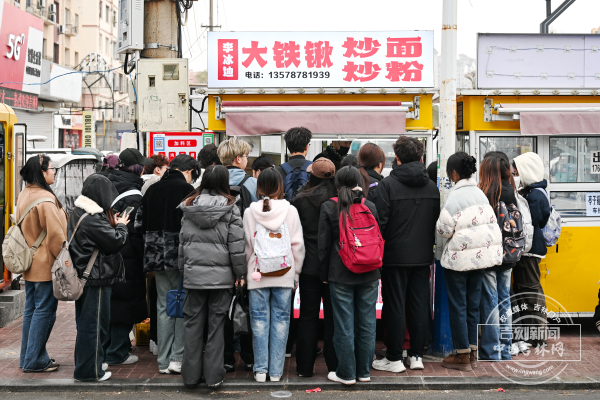 吉林师范大学外,餐馆、超市和美食摊位时不时有下了课的学生光顾。而这其中,有一个摊位前围了不少学生,“我要个王中王。”“我要个鸡蛋火腿的。”几个刚下课的学生正在跟炒饭的老板点着菜。摊位上只有老板一个人,他笑呵呵的,手上不停,一边答应着,一边跟学生们说要到摊位前的小盒子里拿号码牌:“找小号的号码拿,孩子们,这边上有水果,你们拿着吃啊!”