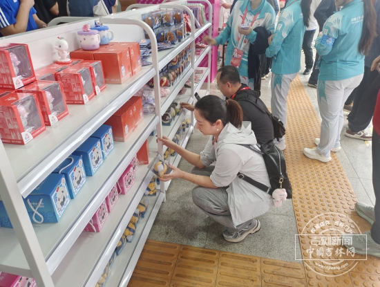 顾客们手持着吉祥物毛绒玩偶、端详着金镶玉纪念章、讨论着新上市的盲盒,眼神里闪烁着发现心仪之物的光芒。此起彼伏的扫码支付声,构成了赛场外最动听的“加油助威曲”。