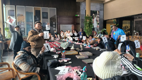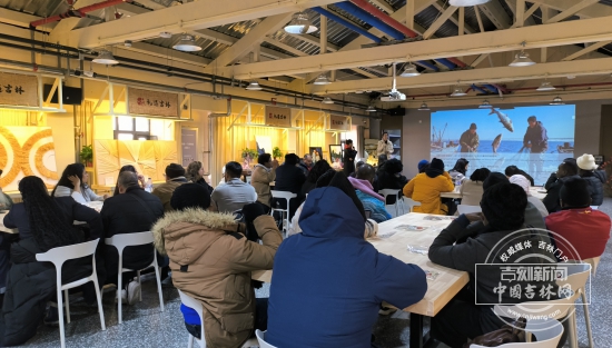 北京大街西历史文化街区的“礼遇吉林”非遗体验中心更是让学员们感受到非遗魅力。这是一堂查干湖鱼皮制作技艺体验课,一块鱼皮、一张福字、一把剪刀、一段双面胶,基础的鱼皮画平面制作让学员们直呼“hard work”。