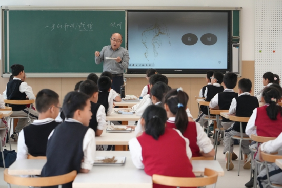 “人参为什么偏爱黑土地?”“野山参和园参有什么区别?”面对孩子们抛出的一个个问题,张瑞以生动的语言一一解答。作为省人参工作专班种植组科技组成员、农工党员,他首次尝试与小学科学教师开展“TT合作”,将高校科研资源转化为适合小学生的实践内容。课堂上,他从人参的生长习性讲到播种育苗技巧,从田间管理延伸至病虫害防治,更带来人参样本、植株标本和人参制品,让孩子们通过观察、触摸、实操,感受中医药文化的博大精深。“高校专家与基础教育课堂的‘破壁’合作,让知识不再停留在课本。”